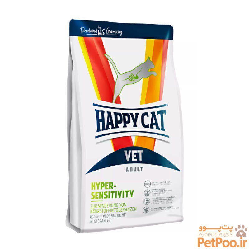 غذای خشک درمانی مخصوص گربه های حساس هپی کت Happy Cat VET Diet Hypersensitivity وزن 1.4 کیلوگرم